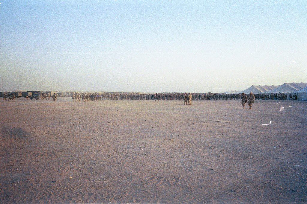 We arrived late at night and took a bus into the middle of the desert to Camp Virginia, our new home for the next month or so. Here we prepped for the possibility of war. There was still no confirmation whether there would be one. Even though it was January, I was only comfortable outside at night, when the heat subsided to mere oven-like intensity. During the day we sweated our balls off.