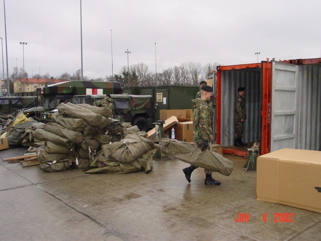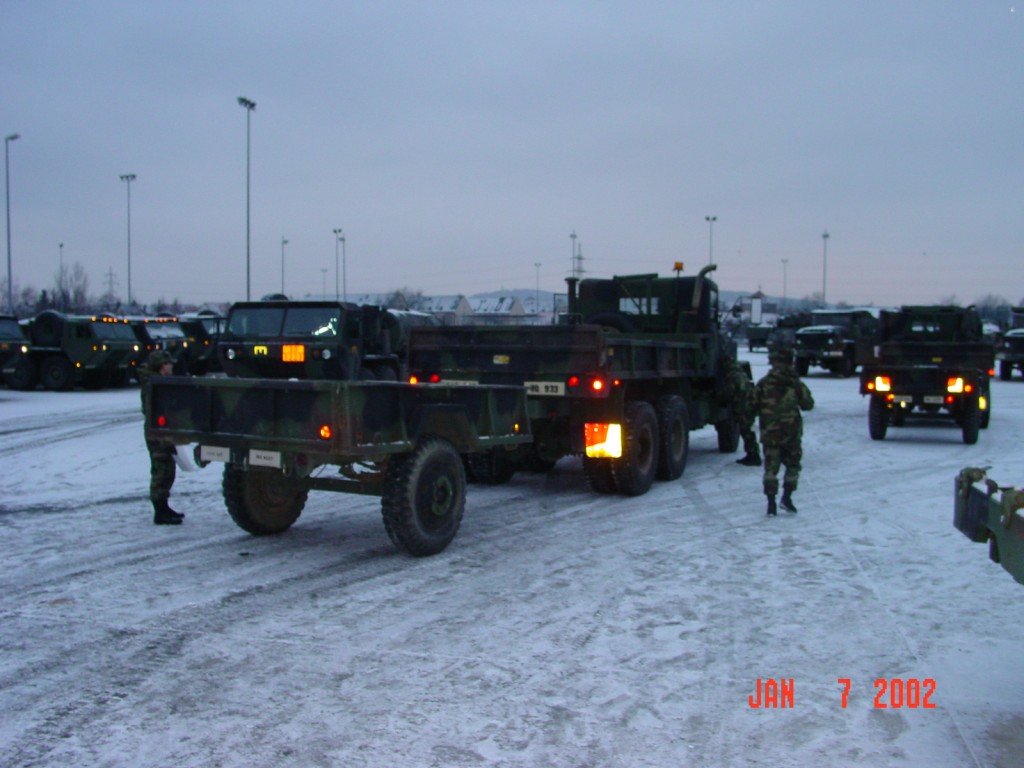 I broke up with my 18-month German girlfriend in September ’02. The US was in Afghanistan & the rumors were flying about Iraq. Everyone wanted to go, but we were scheduled to go to Bosnia instead. October we were given the official green light: We would be one of the first units to go to Kuwait, in preparation for an invasion of Iraq. Tough luck Bosnia. We packed all of our vehicles like mad dogs in the snow in less than two weeks and “railed” them(loaded them on the German trains) all up to Antwerp for cargo ship to Kuwait.