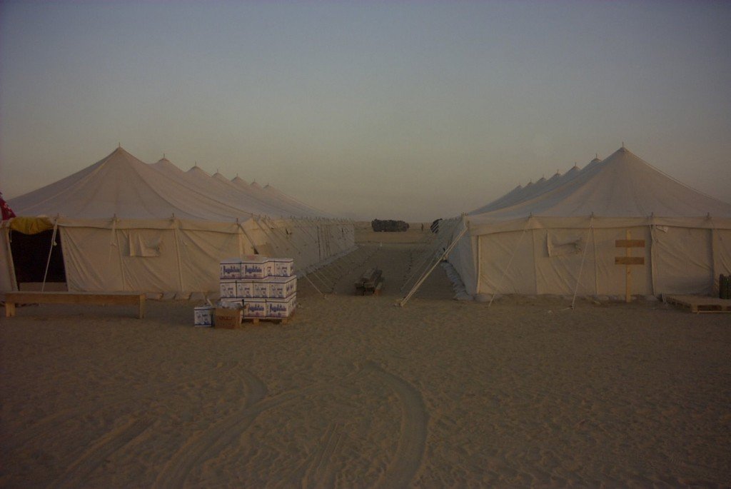 Containers of powdered gatorade to flavor the otherwise repugnant bottled water were going for $10 or 3x what they cost at the PX. During this time I was still able to occasionally use the internet & send an email or two. At night I would walk the two miles to the OPS tent belonging to 3/7 Cav, the tanker/Bradley unit we were supporting, to plug in my laptop. At night it was really quite pleasant.